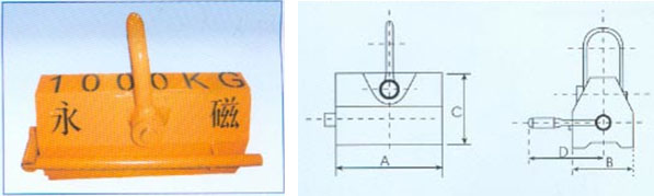 型號 | A mm | B mm | C mm | D mm | 自重 | 最大吸力 | 額定起重 |