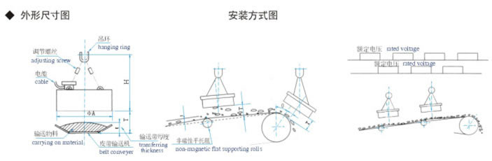 本系列產(chǎn)品為長期工作制的電磁除鐵器,配有三組鏈條,可調(diào)掛鉤,能有方便地調(diào)整架設(shè)高度和安裝高度。其透磁深度大,最適于從較厚料層和較大粒度礦石、煤炭、焦炭、石灰石、碎石中除去鐵磁性異物。是最常用的最經(jīng)濟的系列產(chǎn)品。