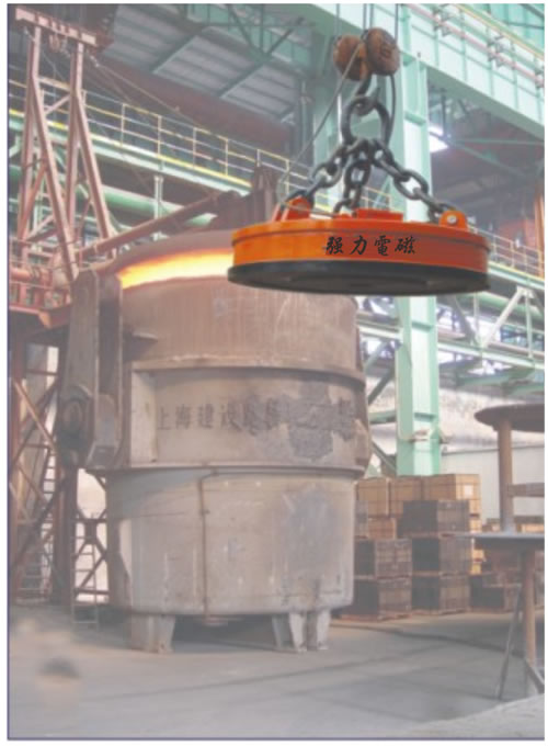 2.電磁鐵采用了特殊的耐熱措施,所以能吊運(yùn)650℃以下的廢鋼。